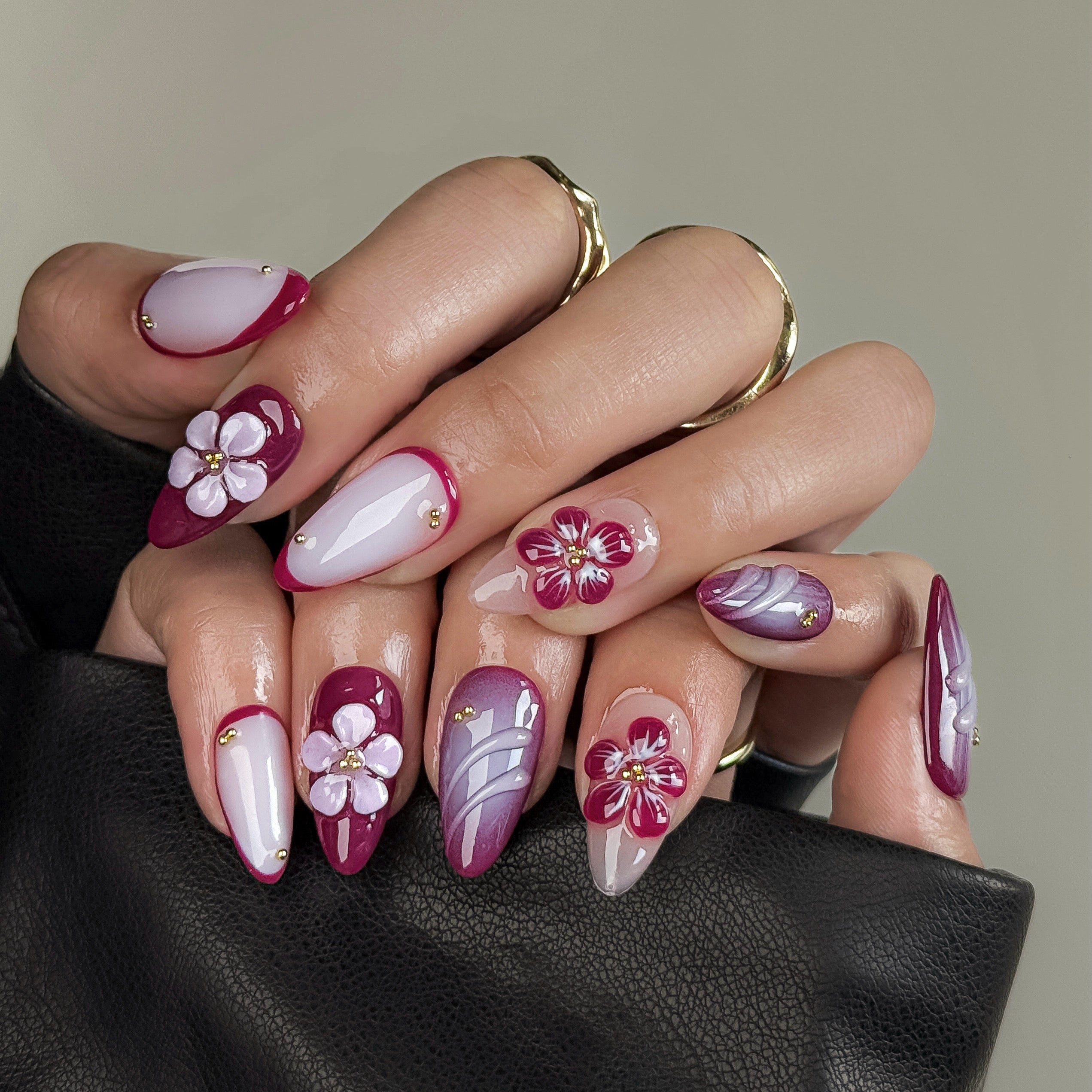 Maroon Blossom | Handmade Press on Nails